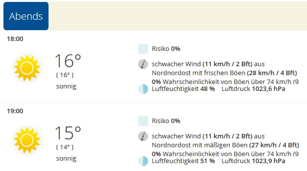 Wetteraussichten bestens
